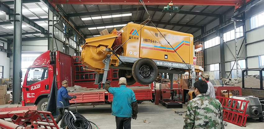 工作原理:當(dāng)液壓系統(tǒng)壓力油進(jìn)入一主油缸時(shí),活塞桿伸出,同時(shí)通過密封回路連通管的壓力油使另一活塞桿回縮。與主油缸活塞桿相連的混凝土輸送活塞回縮時(shí)在輸送缸內(nèi)產(chǎn)生自吸作用,料斗中的混凝土在大氣壓力作用和攪拌葉片的助推作用下通過滑閥吸入口被吸入輸送缸。同時(shí),另一主油缸在油壓的作用下,推動(dòng)主油缸的活塞桿伸出并同時(shí)推動(dòng)混凝土活塞壓出輸送缸中的混凝土,通過滑閥輸送口Y字管進(jìn)入混凝土輸送管。動(dòng)作完成后,系統(tǒng)自動(dòng)換向使壓力油進(jìn)入另一主油缸,完成另一次不同輸送缸的吸、送行程。如此反復(fù),料斗里的混凝土就被吸入和壓送出輸送缸,通過Y型管和出口連接的管道到達(dá)作業(yè)點(diǎn),完成泵送作業(yè)。