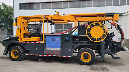 混凝土濕噴臺車包括液壓噴射機械手、噴射機(泵)、外加劑及其添加設備和電纜卷盤、空壓機等,都安裝在同一機械底盤上,是一臺集混凝土泵送、外加劑添加、混凝土噴射等多項作業(yè)于一體的組合設備?;炷翝駠娕_車的各組成系統(tǒng)在整體設計上統(tǒng)一考慮了其布局的合理性,做到了易于維修,并具有易于清洗的特點。