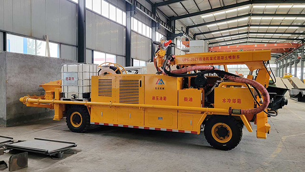 3.車載式濕噴臺(tái)車配有自動(dòng)潤滑系統(tǒng),對(duì)主要密封部位采用自動(dòng)潤滑,油脂加注量、加注時(shí)間自動(dòng)控制,大大延長易損件壽命。速凝劑添加連續(xù)可調(diào),可根據(jù)噴漿量調(diào)節(jié)。